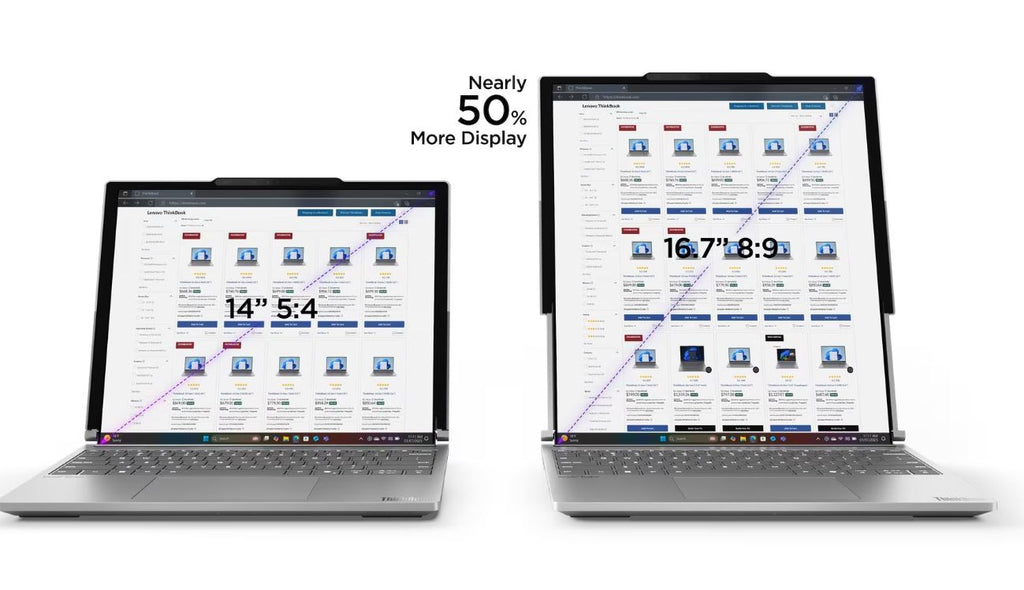 Extend the 14″ to a massive 16.7″ display with a simple camera gesture or dedicated key. You can even use a split screen. When you’re ready to move, just roll the screen back to 14″. This seamless functionality is useful for on-the-go workers, as it enables near-instant, effortless transitions and an extended workspace without a monitor.
